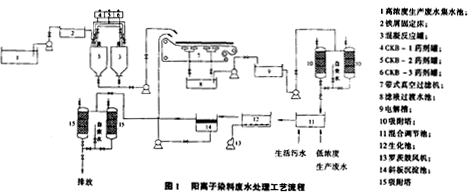 陽(yáng)離子染料生產(chǎn)廢水處理工藝流程見(jiàn)圖1。