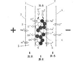 4—陽離子交換樹脂;5—濃水室;6—淡水室