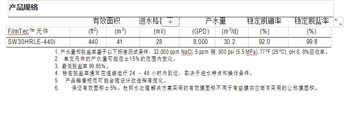FilmTec™ SW30HRLE-440i 元件有著高脫鹽率和低能耗的組合特點,同時還有著最 高有效膜面積和寬進(jìn)水流道,能夠為中等和高等鹽度進(jìn)水的系統(tǒng)提供可持續(xù)的 低生命周期成本。FilmTec™ SW30HRLE-440i 元件有以下優(yōu)點: