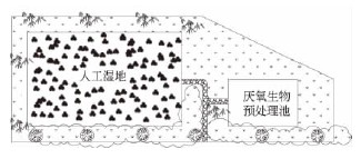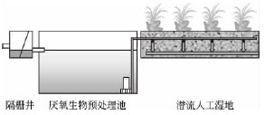 圖1 厭氧生物過濾預(yù)處理+潛流人工濕地處理工藝