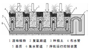 本處理工藝的主體構(gòu)筑物,用于去處污水中的有機(jī)污染物、氨氮和磷。濕地床共280m2,濕地床深1m。濕地表面負(fù)荷為0.25m3/(m2·d)。
