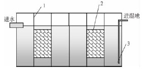 農(nóng)村地區(qū)未經(jīng)處理的生活污水嚴(yán)重污染了土壤、地表水和地下水,是造成農(nóng)村環(huán)境污染的重要原因之一。人工濕地污水處理技術(shù)是20世紀(jì)70年代興起的一種新型生態(tài)污水處理技術(shù),由于具有對(duì)污染物去除效果好、基建和運(yùn)行費(fèi)用低、工藝設(shè)備簡(jiǎn)單、維護(hù)管理方便等特點(diǎn),正逐漸被應(yīng)用于廣大中小城鎮(zhèn)和鄉(xiāng)村地區(qū)的生活污水處理中。潛流人工濕地作為人工濕地的一種類型,因其充分利用了濕地的空間,發(fā)揮了系統(tǒng)間的協(xié)同作用,使污水處理能力得到大幅度提高,且占地面積相對(duì)較小,因而在污水處理中已經(jīng)得到了廣泛的應(yīng)用。目前,江南大部分農(nóng)村地區(qū)都建有化糞池,由于化糞池出水中有機(jī)物、SS等污染物濃度均較高,如果出水直接進(jìn)入潛流人工濕地,將會(huì)對(duì)人工濕地的運(yùn)行造成較為嚴(yán)重的影響,在較短時(shí)間內(nèi)即會(huì)造成濕地堵塞,嚴(yán)重影響濕地使用壽命。因此,在濕地前增加一道預(yù)處理,有效降低污染物濃度,可以大大延長(zhǎng)人工濕地的使用壽命,并且保證人工濕地的出水效果。