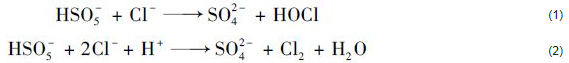 三鹵甲烷(THMs)和鹵乙酸(HAAs)是氯化消毒過程產(chǎn)生的兩類主要的DBPs,是評價DBPs致癌風(fēng)險的重要指標(biāo)參數(shù)[29]. 單過硫酸氫鉀復(fù)合粉中含有NaCl等輔助成分. Lente等[30]研究PMS與鹵素的反應(yīng),發(fā)現(xiàn)PMS可以被鹵素活化產(chǎn)生OX-(X為Cl、 Br 或 I). 徐蕾等[31]的試驗證實,當(dāng)水中Cl-的濃度較低時,PMS即可直接與Cl-進行非自由基反應(yīng)生成活性物種Cl2和HOCl,如式(1)與(2)所示. 因此當(dāng)單過硫酸氫鉀復(fù)合粉溶于水時,由于復(fù)合粉中NaCl的存在,使得復(fù)合粉可以釋放一定量的次氯酸,從而具有生成鹵代DBPs的可能.