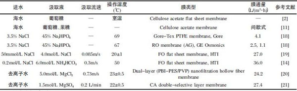 表1 正滲透在海水淡化中的應(yīng)用