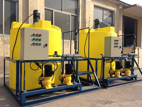 加藥裝置根據(jù)所需藥劑濃度,在攪拌箱內(nèi)配置,經(jīng)攪拌器攪拌均勻后投入溶液箱、用計量泵向投藥點或指定系統(tǒng)中輸送所配制的溶液。成套加藥裝置具有結(jié)構(gòu)緊湊、安全簡單、操作使用簡便等特點。加藥裝置還可根據(jù)用戶不同工藝流程的要求,進行有針對性的設(shè)計、配置必要的部件,實現(xiàn)自動遠程控制等功能。