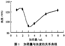 絮凝劑配成1g/L的溶液。燒杯攪拌實(shí)驗(yàn)在磁力攪拌器上進(jìn)行,每次實(shí)驗(yàn)水樣為200mL,水樣取自某星級(jí)賓館的餐飲廢水,經(jīng)初沉后用0.1mol/L稀鹽酸和0.1mol/L氫氧化鈉精確調(diào)pH值到要求值。操作程序?yàn)椋涸诳焖贁嚢柘峦都有跄齽┓磻?yīng)2min后,改變攪拌速度為慢速,繼續(xù)攪拌10min,靜沉20min后,距上液面約5cm處吸取部分上清液測(cè)定剩余濁度及CODcr[2]。
