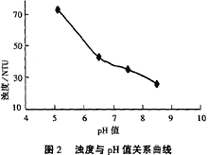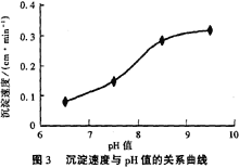 從圖2中可以看出,隨著pH值的增大,上清液濁度減小,比較佳pH值為9左右。而且從圖3可以看出pH值增大時(shí),沉淀速度加大。