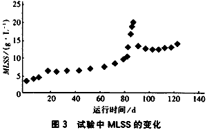 從運行結(jié)果看,國產(chǎn)膜分離性能良好,運行過程中無剩余污泥排放,MLSS變化如圖3所示。