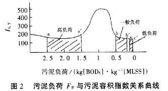 污泥負(fù)荷Fw與污泥容積指數(shù)Is,v的關(guān)系曲線見(jiàn)圖2。