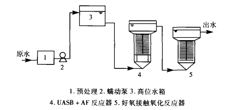 UASB+AF復(fù)合厭氧工藝具有水力停留時(shí)間短,處理效果好的特點(diǎn),尤其對(duì)于高、中濃度的有機(jī)廢水,是一種先進(jìn)、高效的厭氧處理工藝。UASB+AF復(fù)合厭氧工藝流程圖如下: