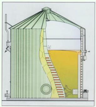 原理:在一個(gè)密閉罐體內(nèi)完成料液的發(fā)酵、沼氣產(chǎn)生的過程。消化器內(nèi)安裝有攪拌裝置,使發(fā)酵原料和微生物處于完全混合狀態(tài)。投料方式采用恒溫連續(xù)投料或半連續(xù)投料運(yùn)行。新進(jìn)入的原料由于攪拌作用很快與發(fā)酵器內(nèi)的全部發(fā)酵液菌種混合,使發(fā)酵底物濃度始終保持相對(duì)較低狀態(tài)。